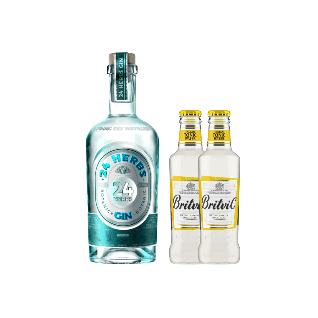 ג’ין 24 הרבס בוטניק וזוג טוניק בריטוויק מתנה! (Herbs 24 Botanical Gin)