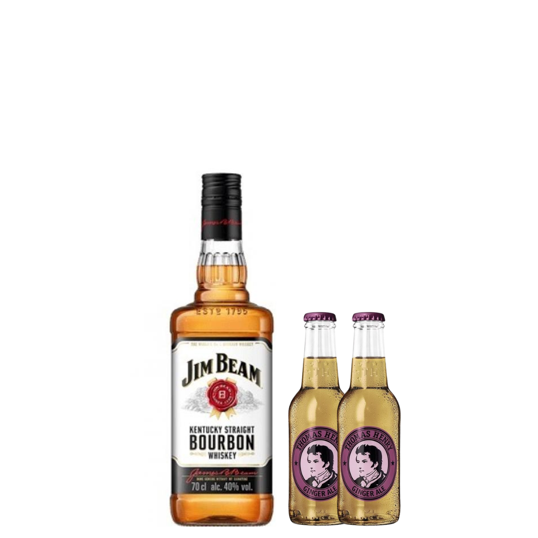 וויסקי ג’ים בים 700 מ”ל וזוג תומאס הנרי גינג’ר אייל מתנה (Jim Beam)