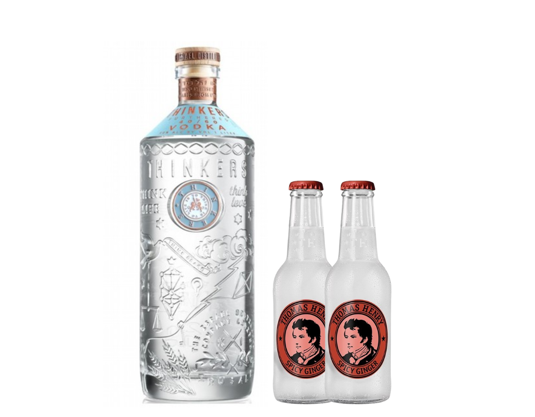 וודקה תינקרס ליטר וזוג ג’ינג’ר ביר מתנה (Thinkers Vodka)
